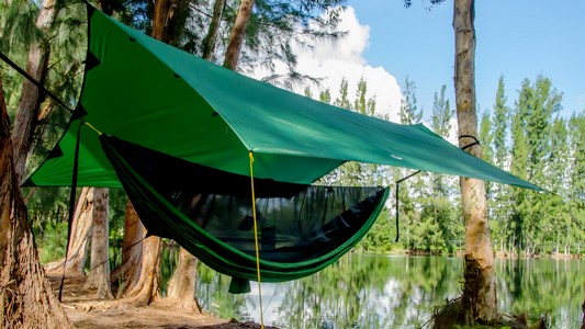 The simplest and easiest system for hanging hammocks is to use 1″ polyester webbing (not nylon as it will stretch, and not polypropylene, as it is not as strong as polyester, although it does float), along with a cinch buckle which can be purchased at onrope1.com or dutchwaregear.com. There are lighter weight suspension systems out there like whoopie slings for all you ultra-lighter’s, but you cannot beat the convenience, adjust-ability, quick setup and built-in “tree huggers” that a webbing/cinch buckle system provides.